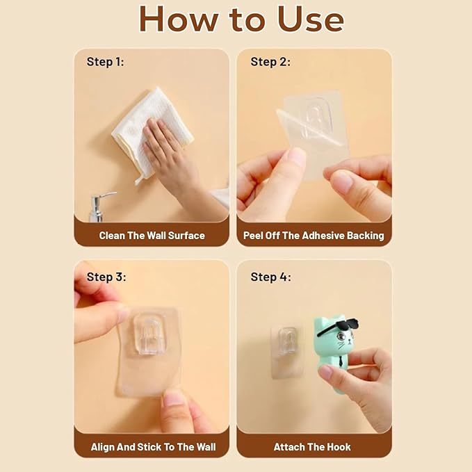 No drilling, nails, or hardware required! Just peel and stick the self-adhesive wall hook on any smooth surface for hassle-free setup.